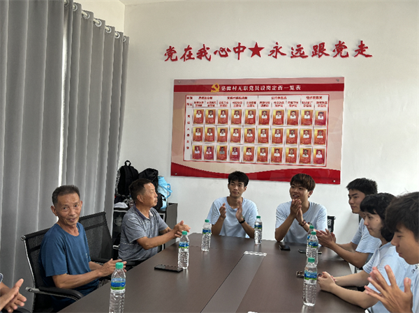 在江村乡村委的协助下,“实践队”开展了“追寻红色记忆”座谈会,邀请了当地退休老党员、退役军人讲述自身奋斗经历,分享了听党话、感党恩、跟党走的心得体会,为队员们上了一场精彩的微党课。同学们纷纷表示,今天的和平与繁荣是无数位革命先烈用鲜血换来的,在追寻红色记忆中,我们深切地感受到共产党人顽强拼搏的精神品格,我们要学习好、传承好老一辈党员的艰苦奋斗精神,续写革命精神之火,擘画时代青春之歌。随后,“实践队”队员杨佳颖还为20余名中小学生开展了一场生动的红色故事宣讲,一段段历史的回溯,一次次凝眸回望历史,让“听众们”更加深入地了解了英雄事迹,缅怀革命先烈,激发了思想共鸣,进一步厚植家国情怀、砥砺强国之志。当日实践活动在指导老师带领全体队员在团旗下重温入团誓词下结束。他们感受到这不仅仅是一次简单的宣誓,更是一份沉甸甸的责任和使命。