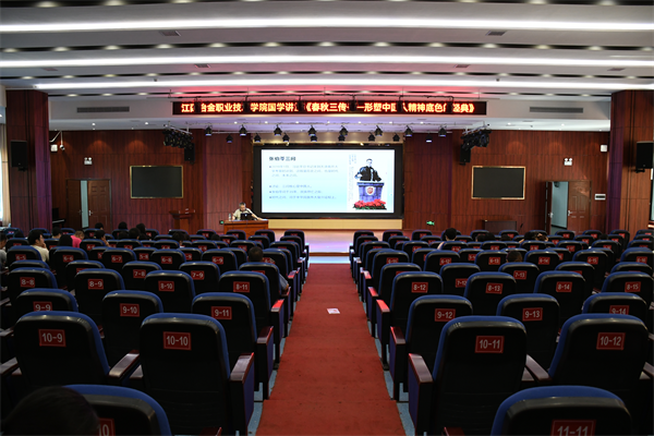 近日,在图书馆报告大厅,江西冶金职业技术学院“国学讲堂”开讲。本期讲座主题为“春秋三传——形塑中国人精神底色的经典”。讲座由学校党委宣传部韩国华老师主讲。近200名教师聆听。