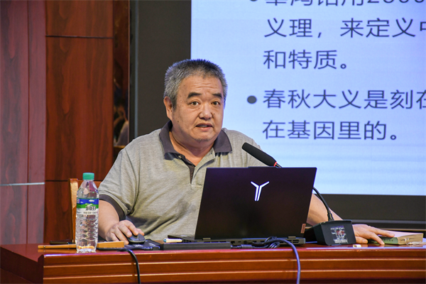 最后,韩国华老师分享了读书体会。他讲到,《春秋三传》给予了我们作为中国人的文化自信。《春秋三传》是极其厚重的。2800年前的春秋,文明大爆发,水平非常高,社会运行复杂,思想丰富。加上后世不遗余力地传承,不断地叠加、使用,使之无比深厚。我们更要有文化自信的底气。他提到,《春秋三传》有着大一统的天下观。尊王攘夷也体现了民族要复兴,国家要统一。春秋核心思想之一是通三统,张三世,而天下观。在构建人类命运共同体的道路上,我们可以善用中国的话语体系表达中国思维,掌握发言权,用春秋讲道理,统一认识,寻求办法,解决时代问题。(来源:江西冶金职业技术学院;文:廖薇)