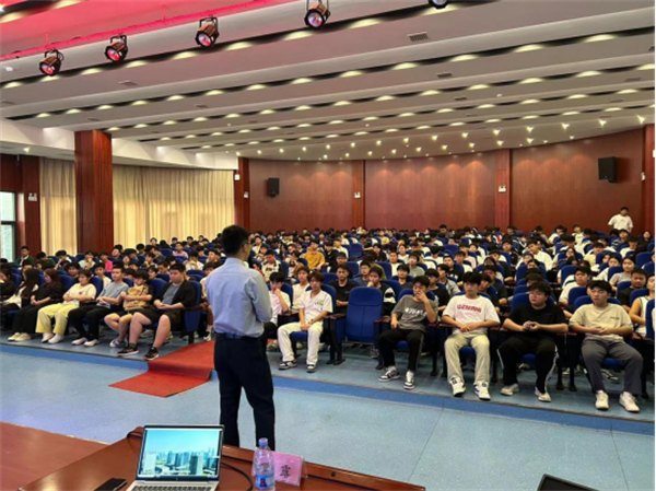 研讨会后,在报告大厅,海康威视人事部门专家进行了关于“钣金订单班”的专题宣讲。近300名学生参加了宣讲活动。宣讲中,企业专家向在场学生展示了行业近年来良好的发展态势,以及企业的强大技术实力和广阔发展空间。宣讲活动结束后,现场进行了订单班面试。有50多名学生报名参加。