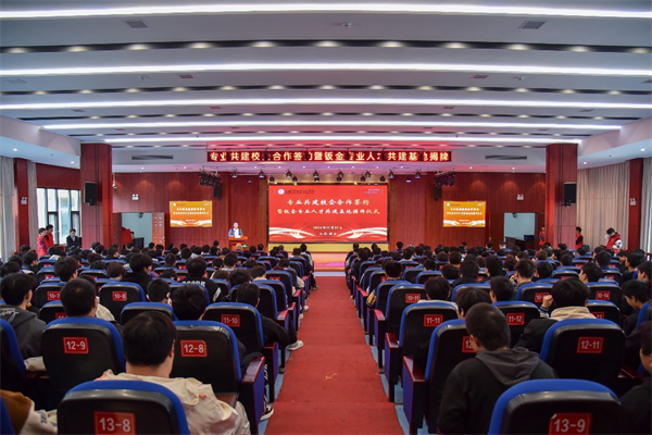 在图书馆学术报告厅,江西冶金职业技术学院与杭州海康威视数字技术股份有限公司举行“专业共建协议签约暨钣金专业人才共建基地揭牌”仪式。海康威视供应链钣金部总经理黄富来,学校党委委员、副院长彭全出席并分别致辞。仪式由制造工程学院副院长黄贤振主持。