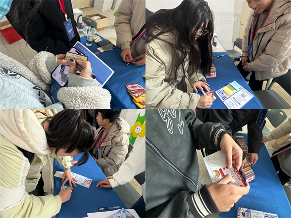 活动现场,学生们手持活动手册,兴奋地穿梭于各个模块区域之间。在意识唤醒区域,学生们通过“我的人生我做主”“绘制彩虹规划图”等闯关游戏,回顾个人经历,定位自身方向,挖掘能力优势并描绘人生不同阶段的角色变换;在自我探索区域,借助“寻找你的兴趣岛”等个性化探索游戏,完成职业价值观、兴趣、性格等测评;职业探索区域设置了“行业就业大揭秘”“岗位知多少”等闯关游戏,帮助学生深入了解热门行业与岗位信息;就业准备区域的“满分简历我来找”“面试角色”“极速出题王”“齐心协力”等游戏,则让学生们在模拟场景中提升简历撰写与面试技巧;在向梦想前行区域,学生们通过撰写心愿签、完成生涯电子报告,畅想未来;能力充电区还提供简历指导、面试咨询、生涯规划等服务;最后在礼品大放送区域,学生们填写问卷调查,依据闯关盖章与积分情况置换刮刮乐。众多学生通过参与活动,取得积分并利用积分兑换刮刮乐获取奖品,充分展现了学校学子的创新精神与才华。