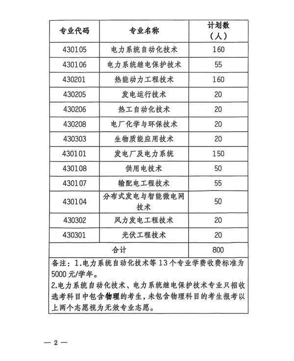 4.学院电力系统自动化技术、电力系统继电保护技术、分布式发电与智能微电网技术、热能动力工程技术、发电运行技术、热工自动化技术、电厂化学与环保技术、风力发电工程技术、生物质能应用技术、光伏工程技术、发电厂及电力系统、供用电技术、输配电工程技术等13个电力相关专业,不招收单色识别不全的考生。