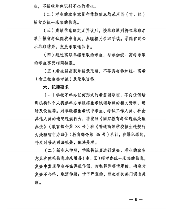 (五)考生经高职单招录取后,不再具有参加统一高考(含三校生类考试)及录取资格。