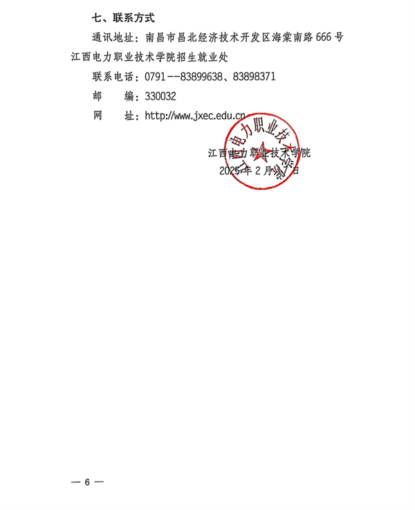 通讯地址:南昌市昌北经济技术开发区海棠南路666号江西电力职业技术学院招生就业处