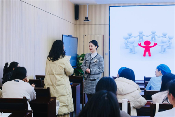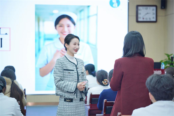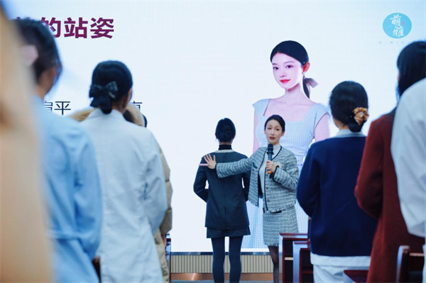 郭雅萌老师走进南昌大学一附院,围绕沟通礼仪与肢体语言表达,通过有趣的案例分析,引导学员们掌握有效的沟通技巧,如积极倾听、清晰表达观点等。在肢体语言教学环节,她亲自示范标准站姿、坐姿和走姿,帮助学员们展现优雅仪态。