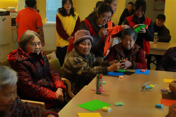 此外,志愿者组织了一系列手工制作和趣味活动,包括捏橡皮泥、绘画等,旨在用陪伴填满老人的时光,让他们真切感受到温暖与关怀,告别孤单,不让老人“身空”。