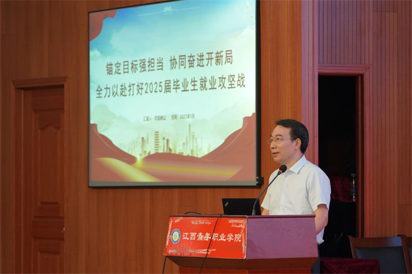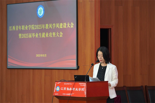 近日,江西青年职业学院教风学风建设暨2025届毕业生就业攻坚大会在学术报告厅举行。学校在家的班子成员,全体中层干部和教职工参加会议。会议由党委副书记邵婷婷主持。