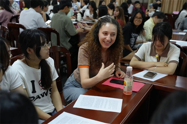 “话题交流”环节成为思想碰撞的舞台。法国留学生Abdel以欧洲数字艺术发展为例,分享AI绘画工具在创意产业的应用,提出“技术赋能艺术创作”的观点;中国学生黄芷怡则聚焦国内“智慧托育”,探讨AI与托育职业融合的新路径。大家围绕“AI如何打破职业壁垒”“跨文化团队协作中的职业竞争力”展开深度对话,不同文化背景的视角交织,凸显AI时代全球化视野的重要性。