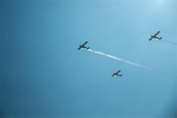此次开学典礼亮点纷呈,飞行训练汇报与军训汇报两大环节充分展现了江航职院的航空特色与新生风貌。随着指挥员宣布飞行训练汇报开始,一场时长12分钟的“蓝天盛宴”震撼上演。飞行编队在空中划出壮美轨迹,无人机与航模灵动穿梭,每一个精准的特技动作,都彰显着航空人的匠心与对航空事业的热爱,让现场观众近距离感受航空魅力。