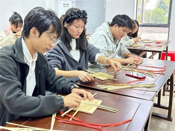 活动现场,方福长大师从临川篾编的历史渊源与发展历程切入,细致讲解了技艺的选材标准、核心手法等知识,并通过实物展示与现场演示拆解操作要点。在实践环节,他手把手指导学生创作篾编作品,大家热情投入,在实践中感受传统工艺的匠心魅力,现场充满了浓厚的学习与创作氛围。