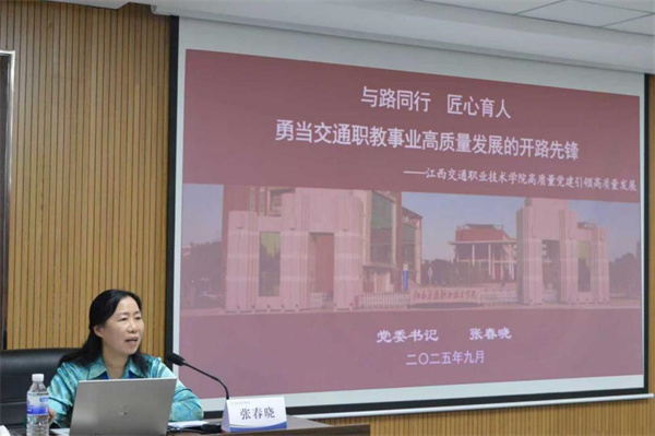 9月27日至29日,2025年全国交通运输类职业院校党建与思政教育学术交流会在青岛港湾职业技术学院召开。江西交通职业技术学院党委书记张春晓应邀在会上发言,她以“与路同行 匠心育人 勇当交通职教事业高质量发展的开路先锋”为题,从立足交通、扎根职教,打造大交通“开路先锋”党建品牌新体系;守正创新、深挖特色,实现党建创先争优新突破;聚力赋能、深化融合,党建引领内涵建设发展新作为三方面,分享了学院在党建和思政教育领域的创新探索和实践成果。