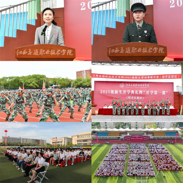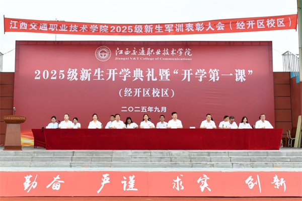 秋光为序,筑梦启航。江西交通职业技术学院经开区校区、新建区校区2025级新生开学典礼暨“开学第一课”分别于9月12日、9月24日举行。学院党委书记张春晓,党委副书记、院长黄明忠,学院在家班子成员出席开学典礼。相关部门负责同志、新生班辅导员、军训教官及全体2025级新生参加典礼。典礼由学院党委委员、副院长吴欣主持。