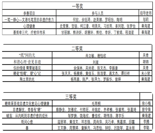 本次大赛以“和谐心理·愈见非遗”为主题,聚焦赣鄱文化创造性转化与心理健康知识普及的双重目标,致力于推动优质文化资源与心理健康教育深度融合并下沉普及。赛事启动以来,得到学校各系部的大力支持,共征集到近20份高质量参赛作品,江西青年职业学院心理健康指导中心充分发挥专业优势,全程为参赛团队提供了选题规划、内容创作和科普表达等方面的精准指导与专业建议,有效保障了作品质量。此次成绩的取得,凝聚了全体指导教师与参赛学生的心血与努力,也体现了学校心理健康教育工作的阶段性成果。学校将继续推进心理健康教育与地域文化传承的融合,搭建更多实践平台,心理健康工作团队也将进一步创新宣传教育形式,提升师生及家长的心理健康素养,切实促进学生心理健康工作的提质增效。(文字:杨雅婷 徐小梅)