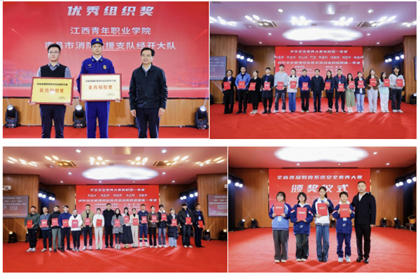 12月20日,全省首届教育系统安全素养大赛决赛暨颁奖仪式在江西青年职业学院顺利举行。本次大赛由省教育厅主办,江西青年职业学院承办,南昌市消防救援支队经开大队协办。省委教育工委委员、省教育厅副厅长程裕秋,省应急管理厅党委委员、副厅长姚丹,省消防救援总队副政治委员兼纪委书记、党委委员高鹏出席颁奖仪式,省应急管理厅、省消防救援总队、省教育厅安全稳定工作处(信访处)有关负责人,经开区消防救援大队大队长涂江辉,部分在昌高校保卫处负责人,以及学校党委书记罗来松参加颁奖仪式。