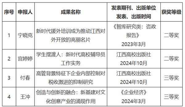 江西外语外贸职业学院首次申报省社科优秀成果奖喜获四项大奖