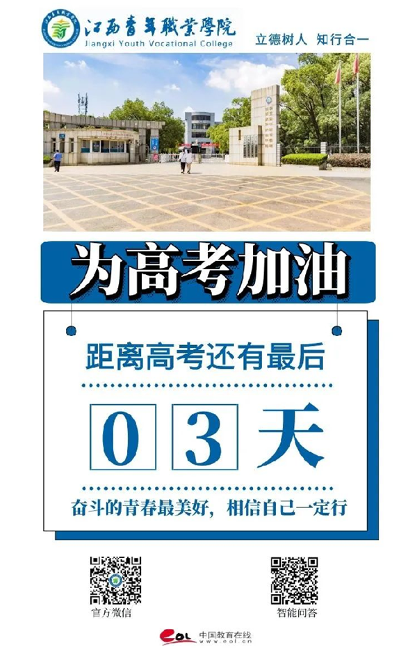 高考倒计时3天“立德树人 · 知行合一”江西青年职业学院为高考学子加油!